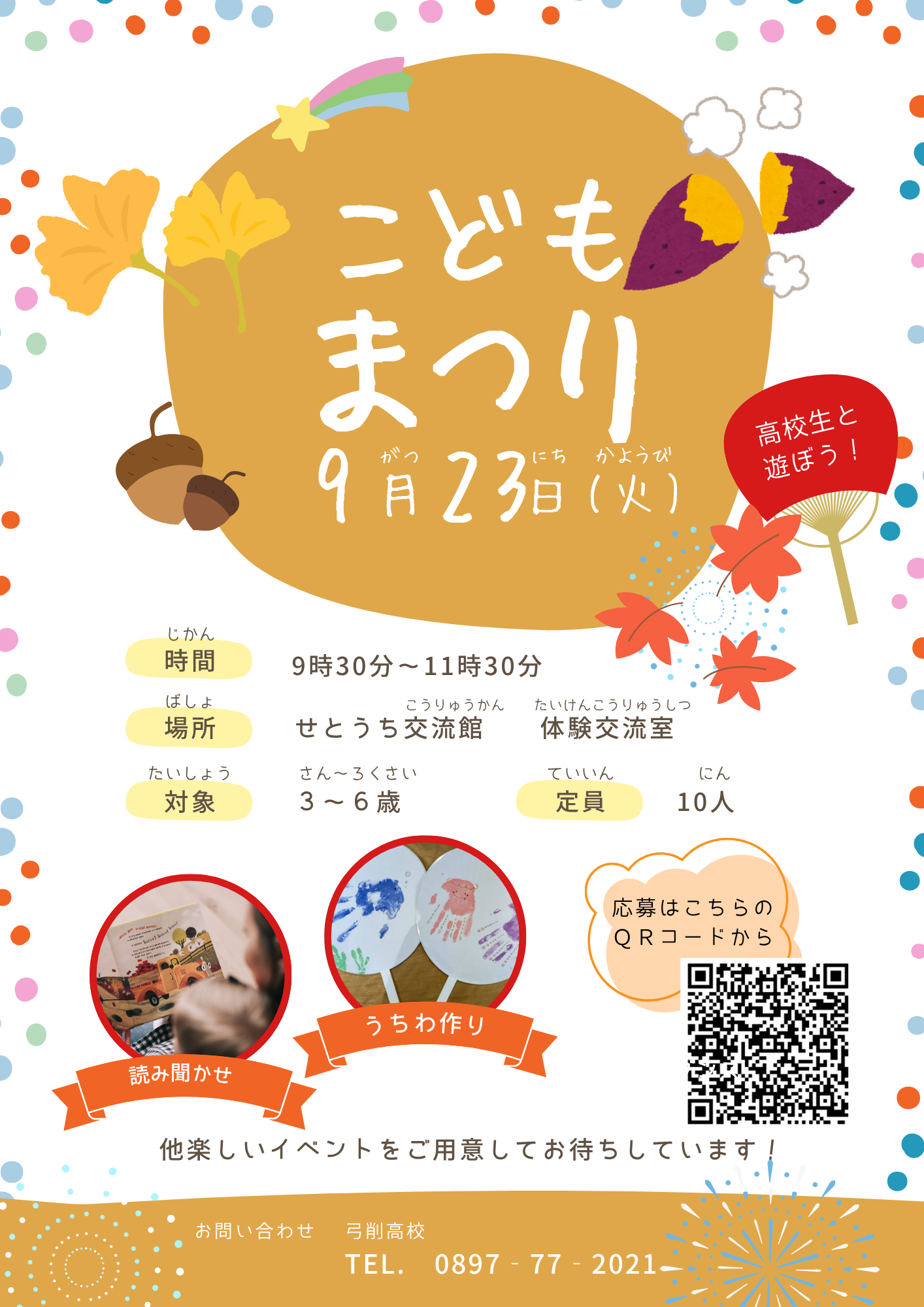 9月23日(火)「こどもまつり」(主催:「元気に年をとろう!班」と「子どもと触れ合う!班」の共同イベント(「総合的な探究の時間」の実践活動になります)