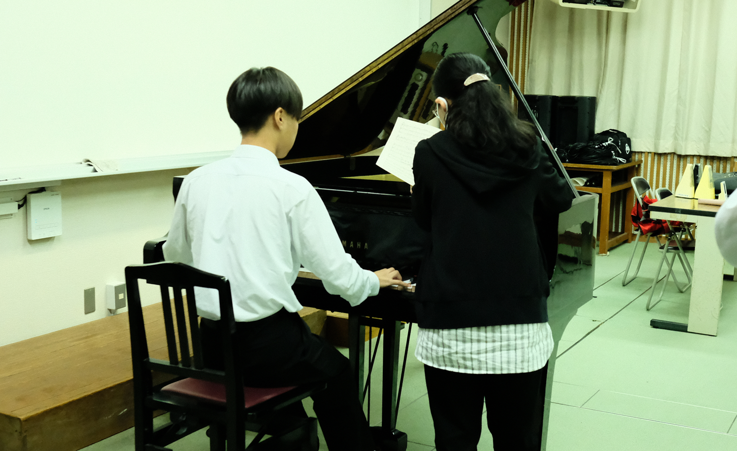 教室ではポスターづくりや劇の練習、体育館ではダンスの練習、音楽室ではピアノの練習など全力で取り組んでいます。